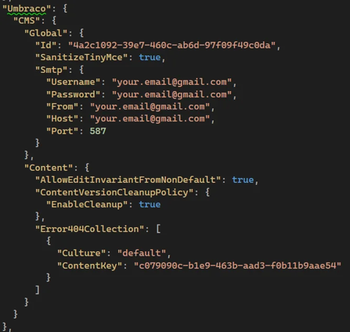 Step 4: Configure error page settings Locate the appsettings.json file and look for the "Content" section. Here, you will find the settings for the Error page: